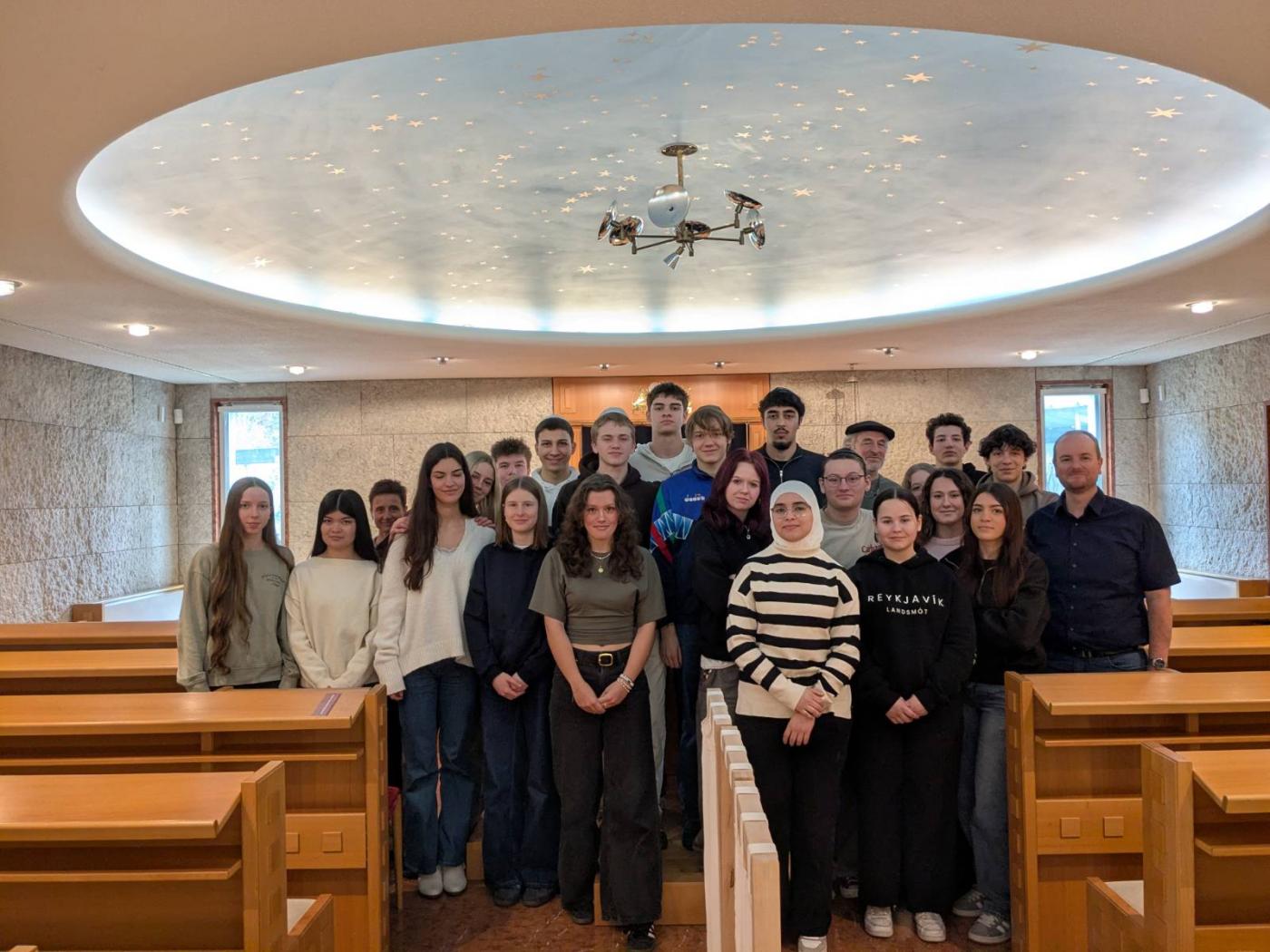 Den Abschluss bildete der Besuch der Synagoge in der Sillgasse. Dort wurden sie herzlich von Siegfried Aviel Gitterle, dem Präsidenten der Israelitischen Kultusgemeinde Innsbruck, empfangen. Er führte die Schülerinnen und Schüler durch die Synagoge, erklärte religiöse Gegenstände und Traditionen und beantwortete geduldig alle Fragen. „Wir konnten viele Fragen stellen“, hielten die SchülerInnen im Anschluss fest. Während des Rundgangs erfuhren sie einiges über die Geschichte des Judentums in Tirol und lernten jüdische Feiertage kennen. „Wir konnten Gemeinsamkeiten und Unterschiede zwischen den Religionen sehen“, meinte eine Schülerin zusammenfassend.
