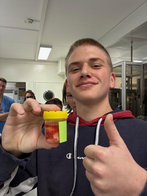 „In der Abteilung Bakteriologie konnten wir beobachten, wie verschiedene Bakterien auf Antibiotika reagieren. Aber unter uns gesagt – es hat dort ziemlich gestunken! Später in der Chemie-Abteilung konnten wir Nierensteine anschauen. Die haben einige von uns ekelhaft gefunden, aber ich habe es bewundert, wie groß sie waren.“