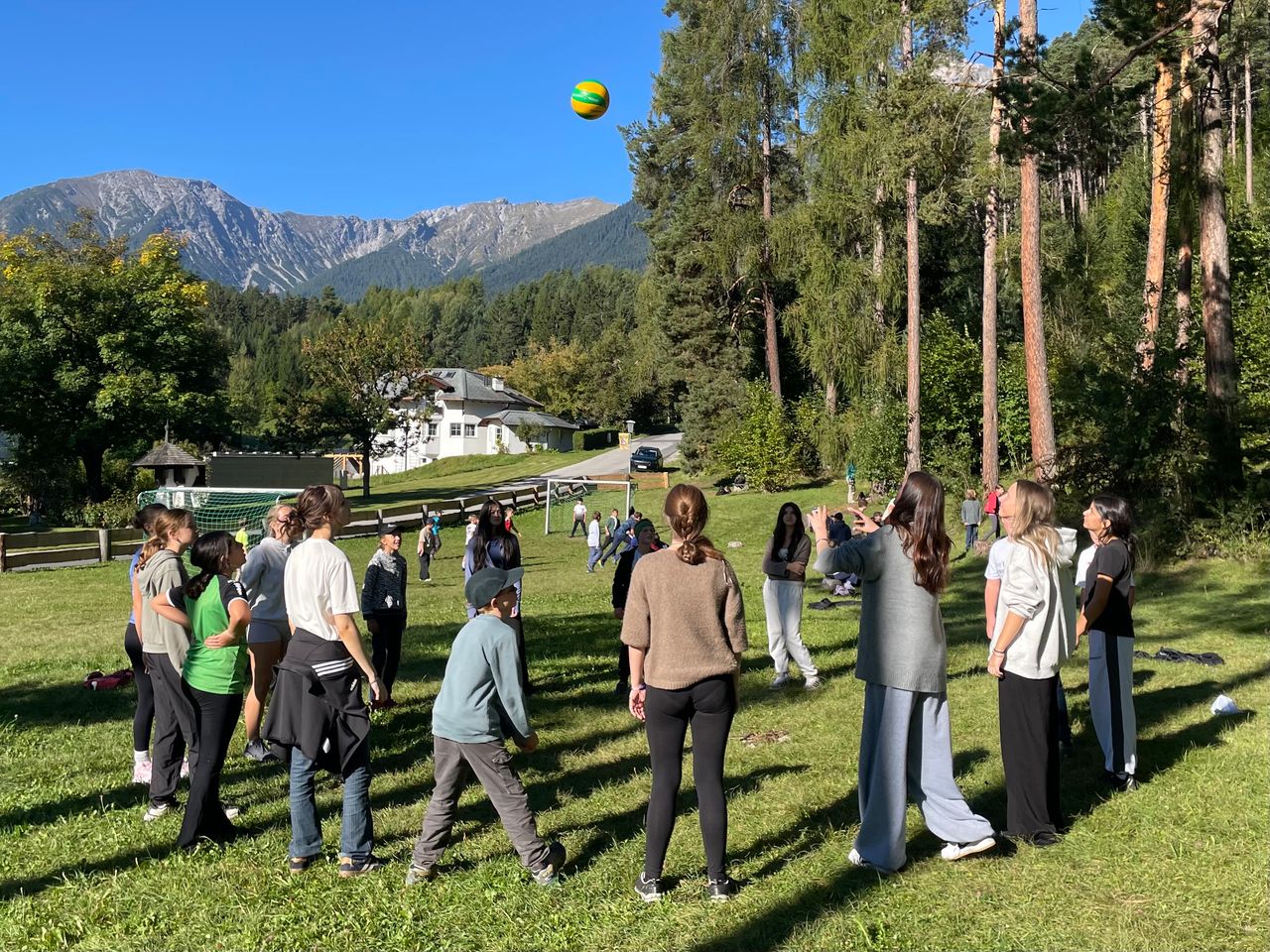 Und schließlich hieß es: „Wenn (Schutz-)Engel reisen, wird sich das Wetter weisen!“ Bei strahlendem Spätsommerwetter begleiteten die Patenschüler*innen der 6. Klassen die Erstklässler auf ihrem Ausflug von Imst über den Starkenberger See zum Rotanger-Spielplatz in Tarrenz. Nach einer stärkenden Jause mischten sich die Großen voller Elan unter die Kleinen – beim Fußball, Frisbee oder bei der kreativen Marshmallow-Challenge. Erstaunlich, was man mit einem Marshmallow, zwanzig Spaghetti und etwas Klebeband alles bauen kann!