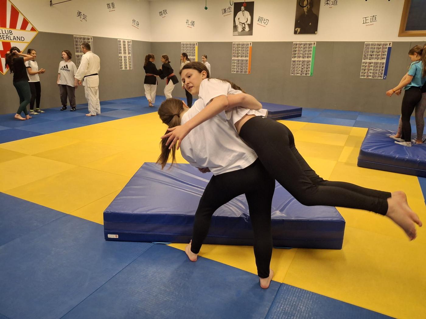 Zu Beginn begrüßten sich die Schülerinnen auf traditionelle Judo Art und begannen mit dem Training. Nach einem kurzen Aufwärmprogramm machten sich die Schülerinnen bereit und lernten verschiedene Übungen zur Fallschule kennen. Diese hatten sie nach einer kurzen Erklärung und Demonstration durch den Trainer gut gemeistert. Anschließend wurde von zwei Judokas vorgezeigt, wie man eine Person mit dem Festhaltegriff „Kesa“ gut am Boden festhalten kann. Auch den Wurf, den Judokas unter dem Namen „O-goshi“ (große Hüfte) kennen, durften die Schülerinnen ausprobieren. Außerdem lernten wir auch verschiedene Selbstverteidigungsgriffe. Durch das Training mit dem professionellen Trainer Herrn Aichwalder Richard und dessen Sohn Bruno haben wir nicht nur viele Eindrücke von der Kampfsportart Judo gewonnen, sondern auch viele nützliche Übungen gelernt. Obwohl das Training anstrengend war, haben wir viel gelacht.
