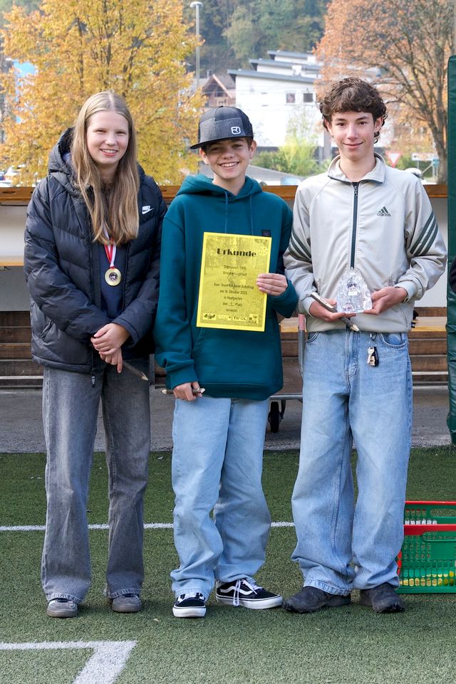 - Das Team der 3./4. Klasse Burschen (David Zangerle, Fabian Falkner, Mohanad Al Falouji) fiel durch ein Streichresultat leider aus der Wertung